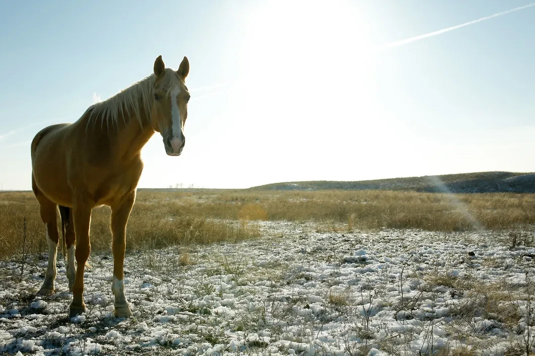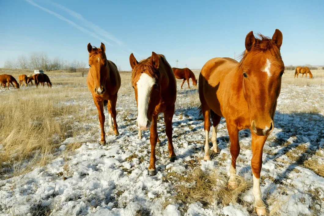 Солнце — к закату, значит, кобылам и жеребятам, которые пасутся отдельно, пора возвращаться на конезавод. Первым возвращается молодняк. Кроме табунщика жеребцов ведут две кобылы-няньки. Под их чутким руководством сначала лошадки идут на водопой, а потом к заготовленным заранее лоткам с зерном и отрубями. Все-таки зимой в степи до отвала не наешься.