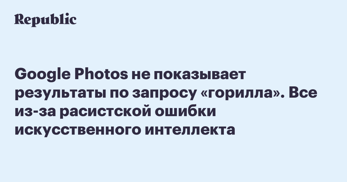 Google Photos не показывает результаты по запросу «горилла». Все из-за расистской ошибки искусственного интеллекта