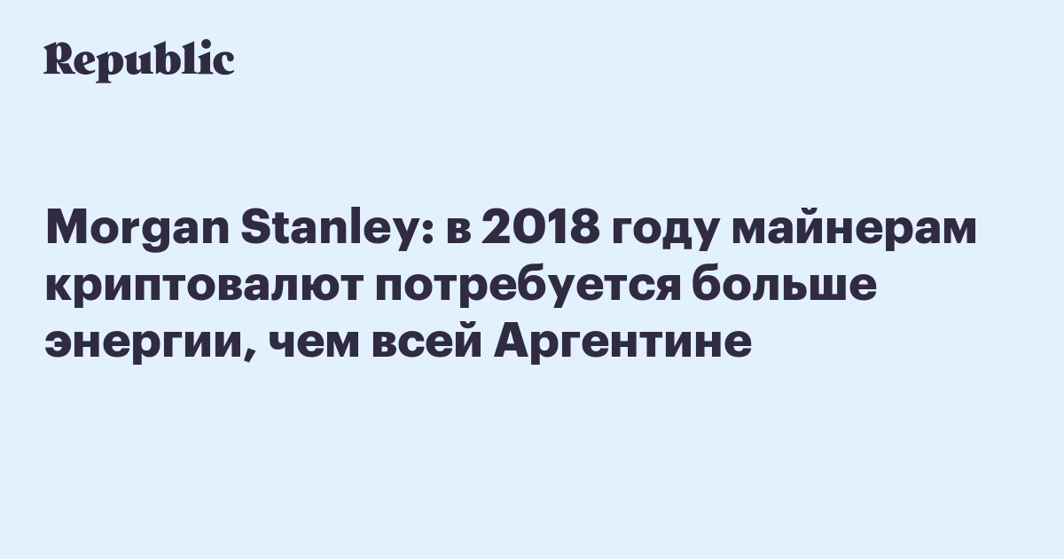 Morgan Stanley: в 2018 году майнерам криптовалют потребуется больше энергии, чем всей Аргентине