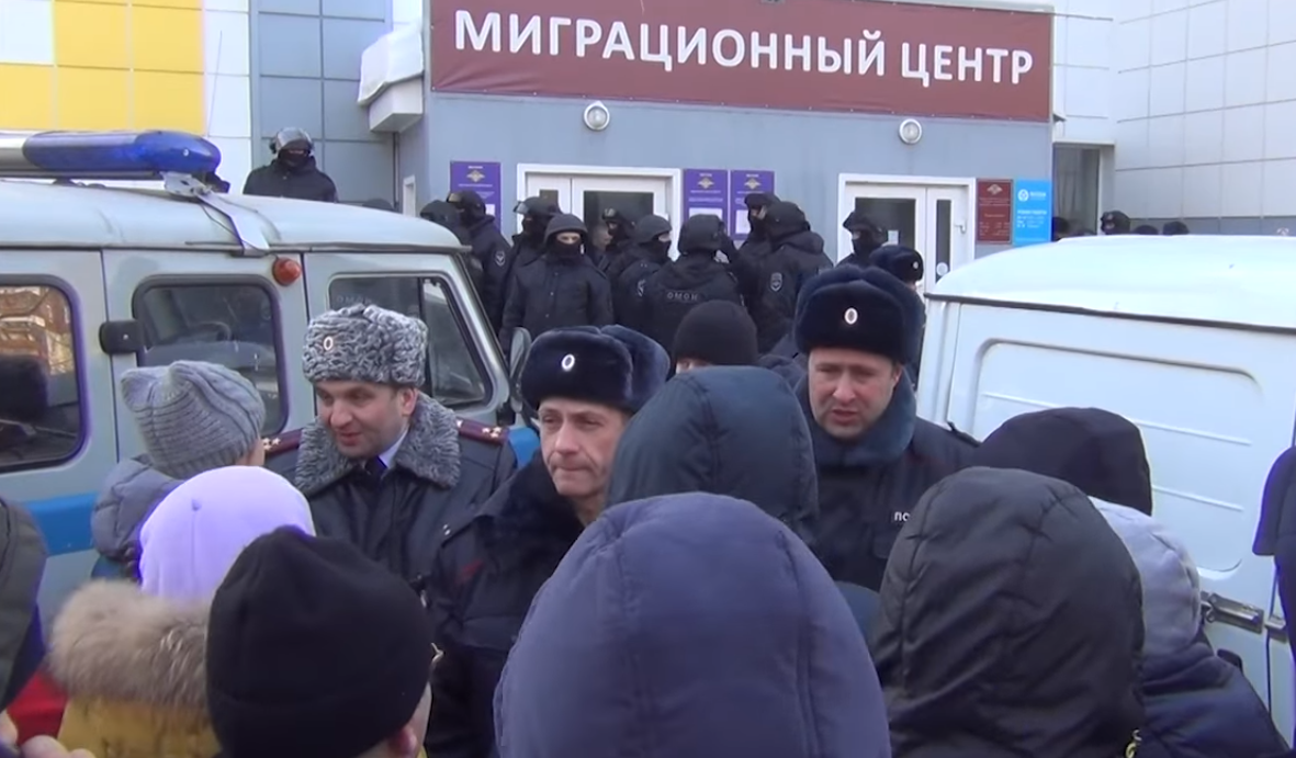 На место прибыли ОМОН и сотрудники Росгвардии, которые перекрыли вход в миграционный центр. Полиция применяла электрошокеры и дубинки.