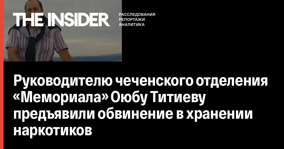 Руководителю чеченского отделения правозащитного центра «Мемориал» Оюбу Титиеву предъявлено обвинение в хранении наркотиков в крупном размере. Об этом сообщает «Медиазона» со ссылкой на руководителя программы «Горячие точки» Олега Орлова.По словам Орлова, в среду, 10 января, Титиеву предъявили обвинение по части 2 статьи 228 УК (незаконное хранение наркотических средств в крупном размере).