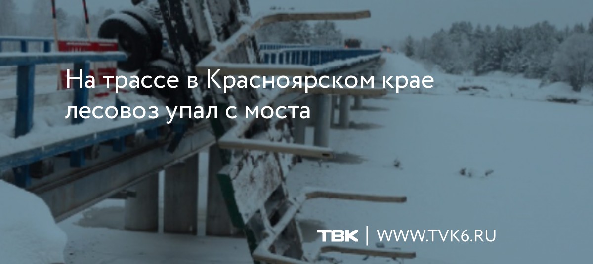На трассе в Красноярском крае лесовоз упал с моста