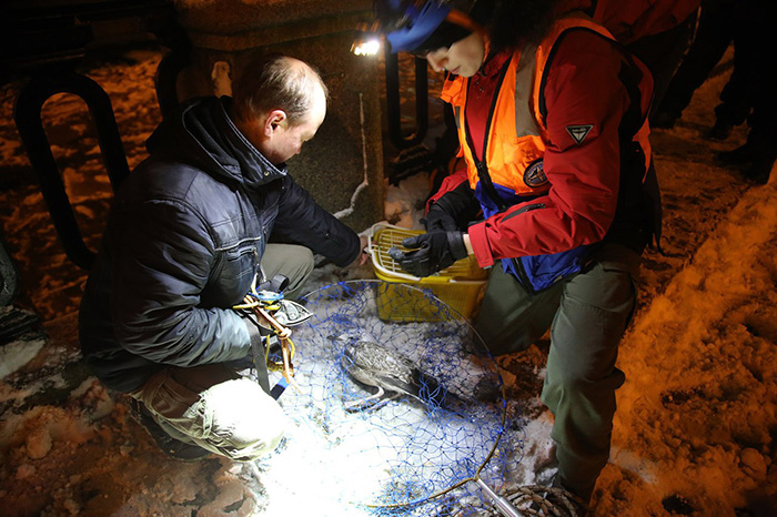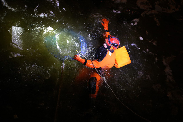 Стало понятно, что за ней нужно идти, и экипировку выдали мне. Надев гидрокостюм и [альпинистскую] обвязку, я зашла в воду. Страха, как и обычно, было немного — это как у артистов: каждый раз как первый. Вода холодная, для этого нужно быть подготовленным. Пришлось разгребать руками лед, чтобы до нее добраться, но у меня получилось. С помощью сетки достали ее. Чайку в итоге отправили в центр реабилитации диких животных «Сирин».