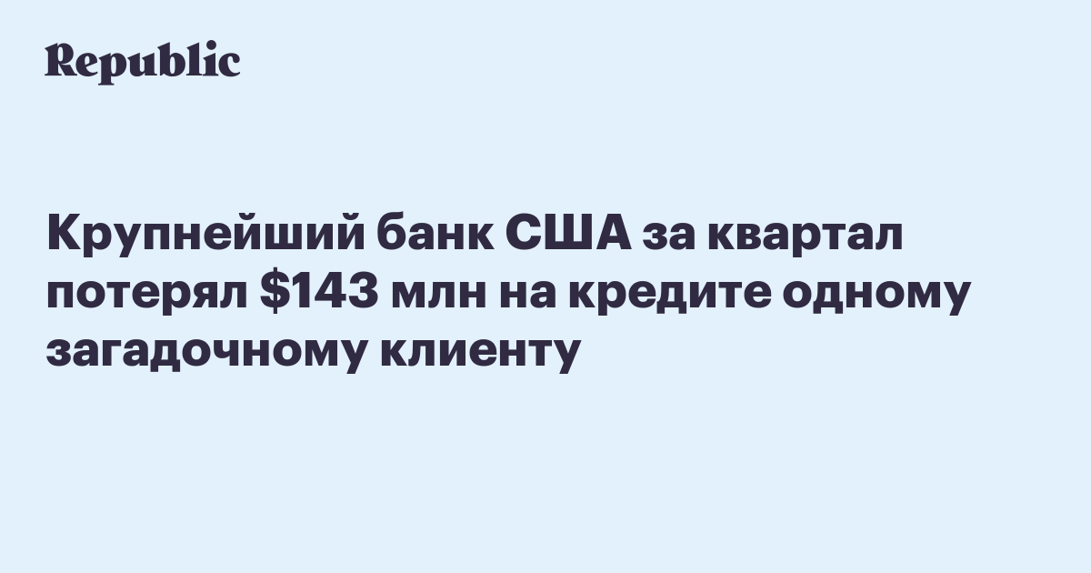 Крупнейший банк США за квартал потерял $143 млн на кредите одному загадочному клиенту