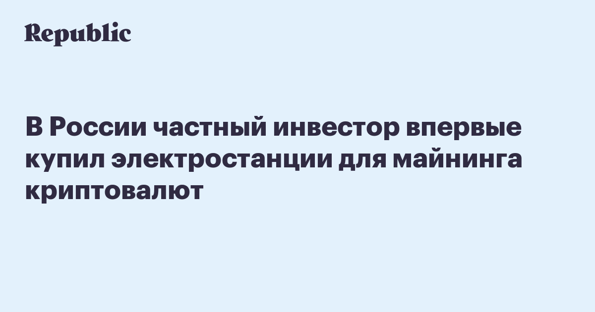 В России частный инвестор впервые купил электростанции для майнинга криптовалют