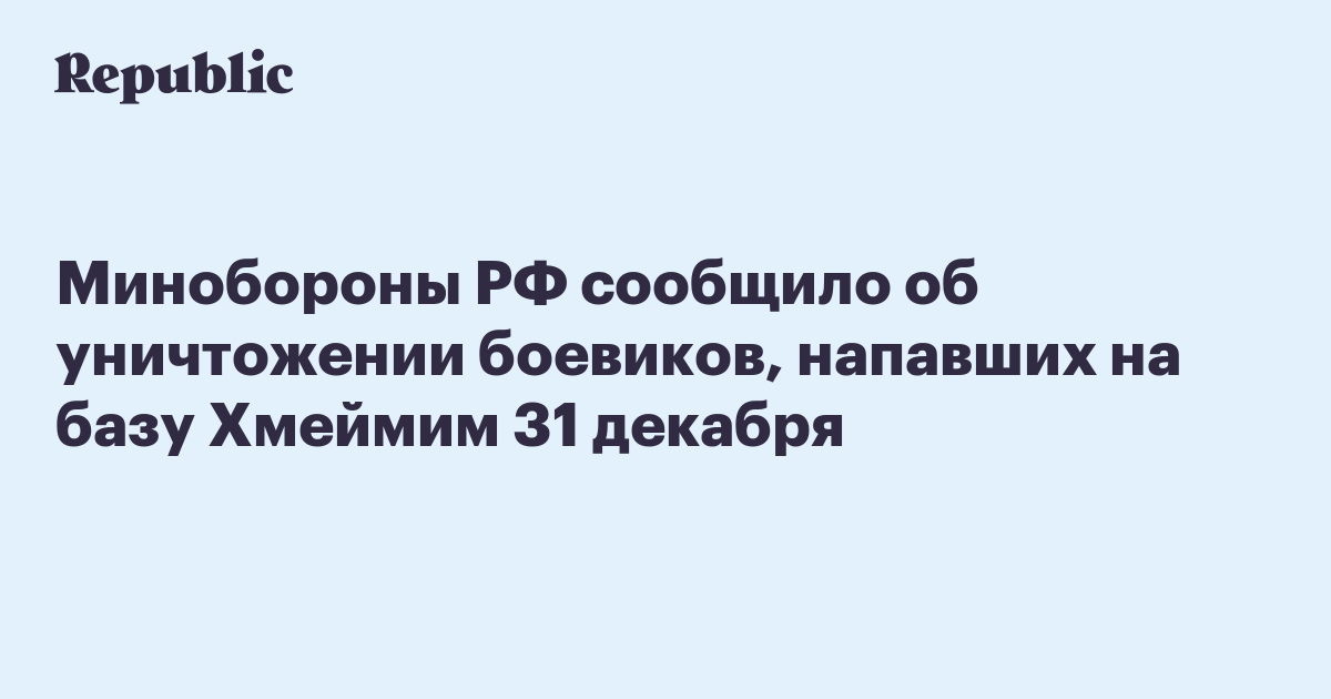 Минобороны РФ сообщило об уничтожении боевиков, напавших на базу Хмеймим 31 декабря