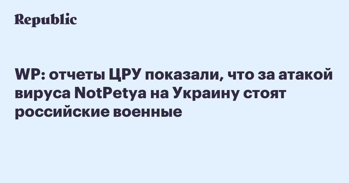 За атакой вируса-шифровальщика NotPetya на Украину летом 2017 года «вероятнее всего» стоят хакеры, связанные с российскими военными, а именно с Главным управлением Генштаба РФ (известным как ГРУ). Об этом пишет The Washington Post со ссылкой на секретные отчеты ЦРУ, оказавшиеся в распоряжении издания. В ЦРУ отказались прокомментировать публикацию WP.