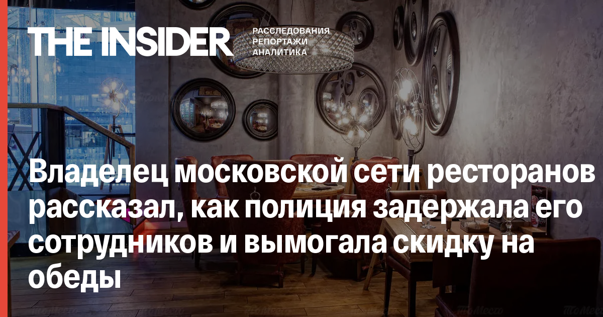 Владелец московской сети ресторанов рассказал, как полиция задержала его сотрудников и вымогала скидку на обеды
