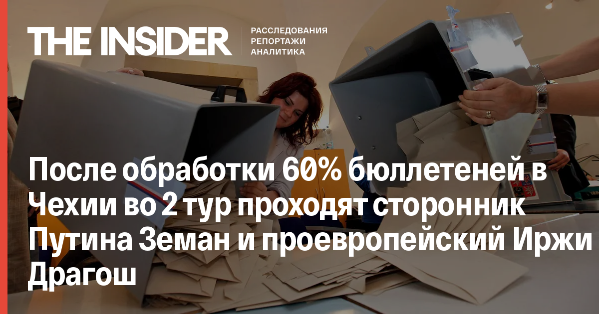 Напомним, ранее чешский журналист Иржи Юст рассказал The Insider, почему, несмотря на экономическое благополучие, чехи устали от Земана и почему любой из его соперников устроит всех, кому надоела пророссийская политика нынешнего президента. Читайте подробнее в материале Земан против всех: чехам предстоит выбрать между сторонником Путина и европейским курсом