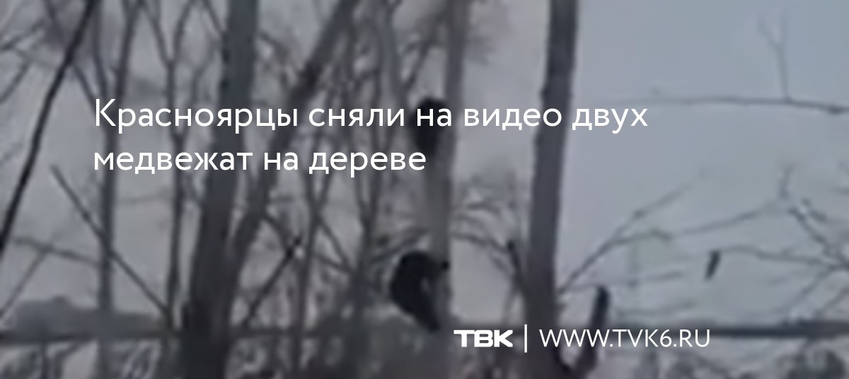 Красноярцы сняли на видео двух медвежат на дереве