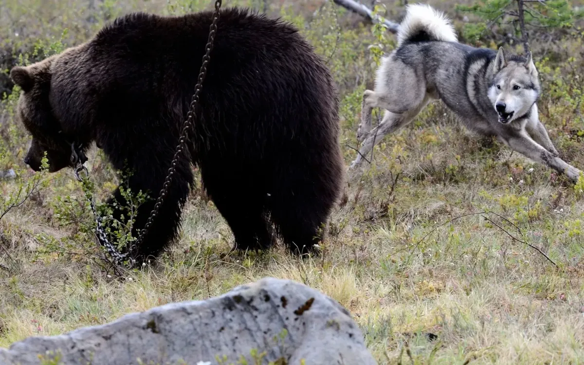 Контактная притравка молодыми и сильными собаками беспомощных диких животных, содержащихся в неволе, — до сих пор популярное развлечение среди российских охотников. Только в Московской области притравочных станций около десяти.