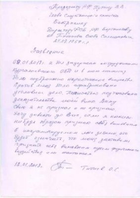 «Это его личное решение, Оюб посчитал нужным разъяснить, что на него оказывается давление, имеет место принуждение к самооговору. Он также пояснил, что со стороны правоохранительных органов оказываются противоправные действия. Адресаты — это президент Путин, председатель СК Бастрыкин и председатель ФСБ Бортников», — приводит РБК слова адвоката Титиева. Кроме того Титиев «дал подробные пояснения по поводу твердости своей позиции, что наркотики ему были подброшены».