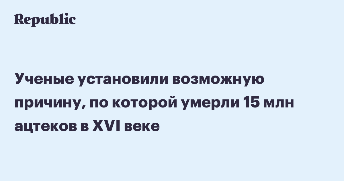 Ученые установили вероятную причину, по которой в середине XVI века умерли около 15 млн ацтеков – 80% населения. Работа об этом опубликована в научном журнале Nature Ecology & Evolution. При эпидемии, которую местные прозвали «коколизтли» (в переводе с языка науатль означает мор), начиналась тяжелая лихорадка, головные боли, кровотечения из носа, глаз и рта.