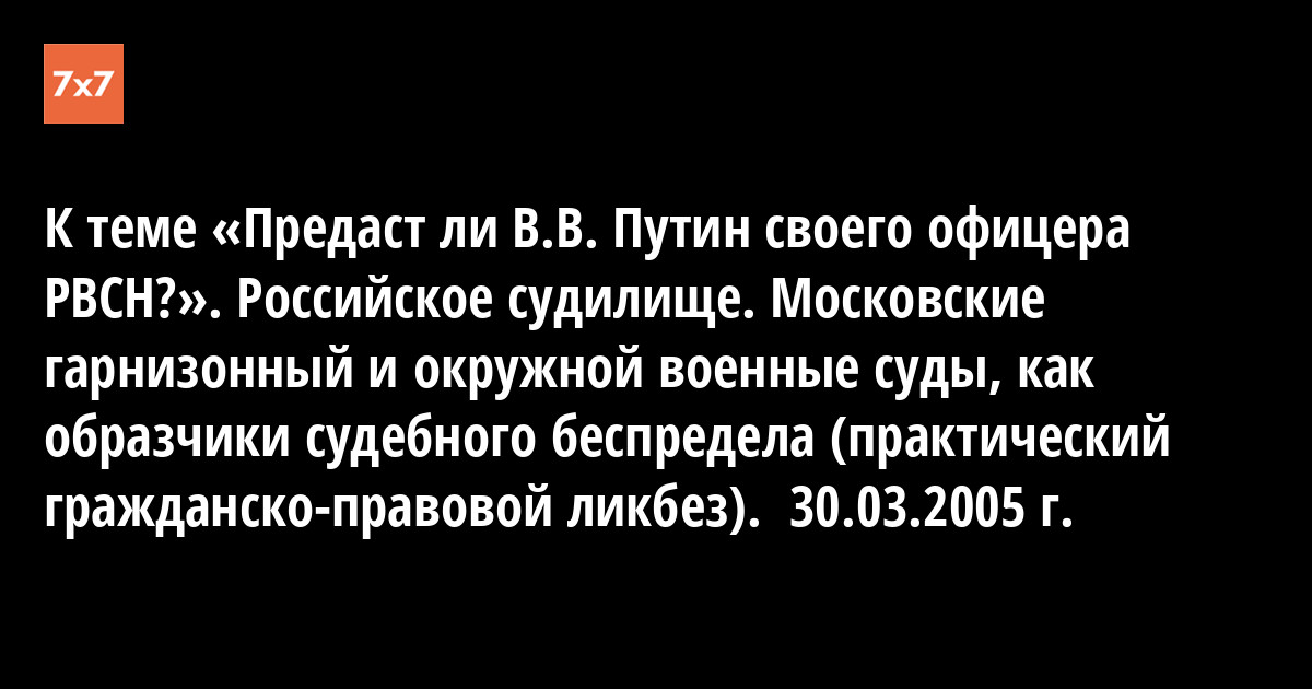 К теме «Предаст ли В.В. Путин своего офицера РВСН?». Российское судилище. Московские гарнизонный и окружной военные суды, как образчики судебного беспредела (практический гражданско-правовой ликбез). 30.03.2005 г.