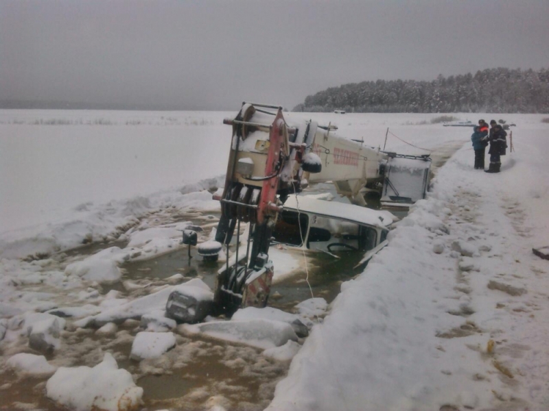 Автокран затонул следом за бензовозом ночью 11 январяФото: ГУ МЧС по Иркутской области Люди не пострадали, но произошел разлив нефтепродуктов. Устранение последствий аварии и зачистка реки Лены продолжались четыре дня.