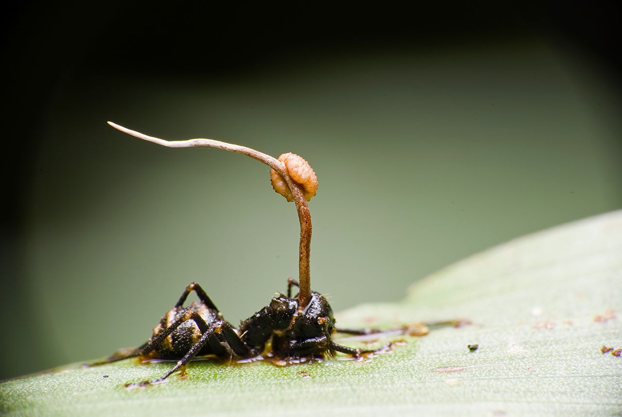 sharrrp: «Смертельный грибок, контролирующий разум. Он заражает только муравьев, но этот грибок вышел прямиком из фильмов ужасов. Зараженные муравьи забираются как можно выше, а затем сжимают свои челюсти [держатся за лист]. После чего из их головы вырастает стебелек и выпускает споры, заражающие других муравьев».