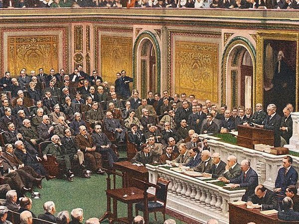 Да, кто-то ушел, кто-то пришел. Италия, как мы видим, пришла на время. А что касается Америки, то она показала свою роль в том же 1918 году: неслучайно же Вильсон смог заставить прислушаться к этим своим пунктам! И это случилось не только из-за его моральной проповеди (в которую он, кстати, искренне верил). А это случилось из-за того, что американские войска удалось в рекордно короткие сроки перебросить на кораблях через Атлантику. Они сыграли огромную роль в победе стран Антанты после выхода России из Первой мировой. Они в значительной степени сорвали немецкое наступление на Париж; было организовано и контр-наступление. То есть даже до Версаля роль Америки была уже достаточно высока.