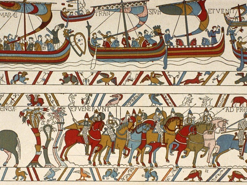 Вышивка на льняном полотне шириной около полуметра и длиной чуть более 68 метров была создана в XI веке. Вероятно, инициатором создания была королева Матильда, жена Вильгельма Завоевателя, или брат короля епископ Одо. Вышивка рассказывает историю завоевания Вильгельмом Англии, включая знаменитую битву при Гастингсе. Полотно хранилось в соборе города Байё и лишь дважды, при Наполеоне и во время Второй мировой войны, вывозилось в Париж. Сейчас оно находится в Байё в специально построенном музее.