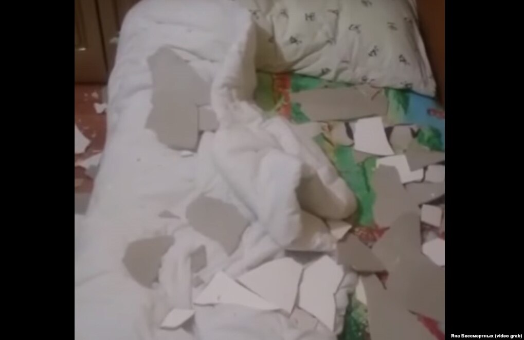 По словам Бессмертных, ребенок был засыпан кусками штукатурки полностью, еще один большой кусок свисал с потолка прямо над его головой, но родители вовремя вытащили пострадавшего мальчика из кровати. Рядом находилась восьмимесячная дочь Бессмертных.