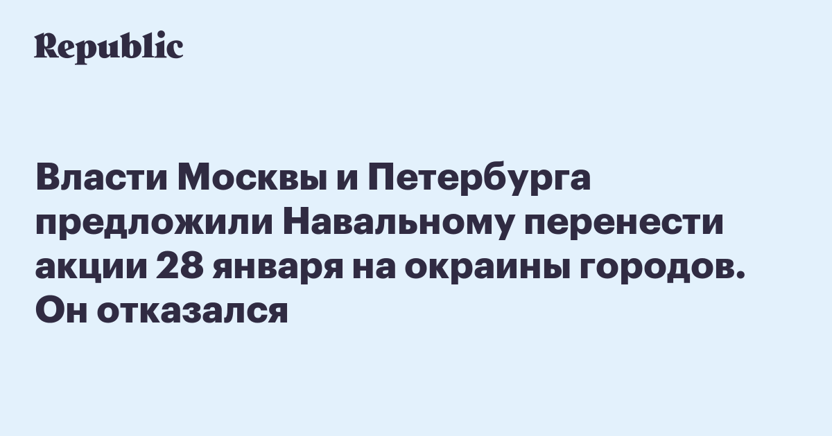 Власти Москвы и Петербурга предложили Навальному перенести акции 28 января на окраины городов. Он отказался