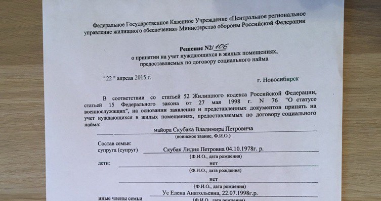 – Летом 2015 года президент РФ внес изменения в Федеральный закон о статусе военнослужащего. Теперь в законе черным по белому было сказано, что военнослужащий, признанный нуждающимся в обеспечении жильем, без своего согласия не может быть уволен. А я был признан нуждающимся Центральным региональным управлением жилищного обеспечения Минобороны РФ. В том же законе сказано, что военнослужащие, признанные нуждающимися, обеспечиваются жильем по избранному месту жительства до увольнения с военной службы. Пользуясь своим правом, я написал рапорт об увольнении по состоянию здоровья. Своего согласия на увольнение без обеспечения жилищной субсидией не дал. Тем не менее издали приказ о моем увольнении. Я пошел в суд. Во всех инстанциях мне отказали. Российская Федерация в лице Центрального регионального управления жилищного обеспечения Минобороны РФ признает меня нуждающимся, но военный прокурор, суды не признают!