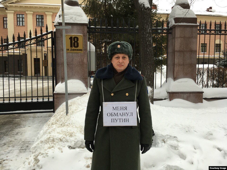 – После того как я устал бороться с военной прокуратурой, военными судами и командованием Вооруженных сил, я вышел на пикет. Я записал видеообращение к президенту Российской Федерации и просил ответить на очевидные вопросы. Почему я лишен допуска к военной тайне по истечении одного года? Почему другие военнослужащие в аналогичном правовом положении проходят военную службу? Почему я не получал 4 месяца денежное довольствие, хотя по закону должен был получать? И так далее.