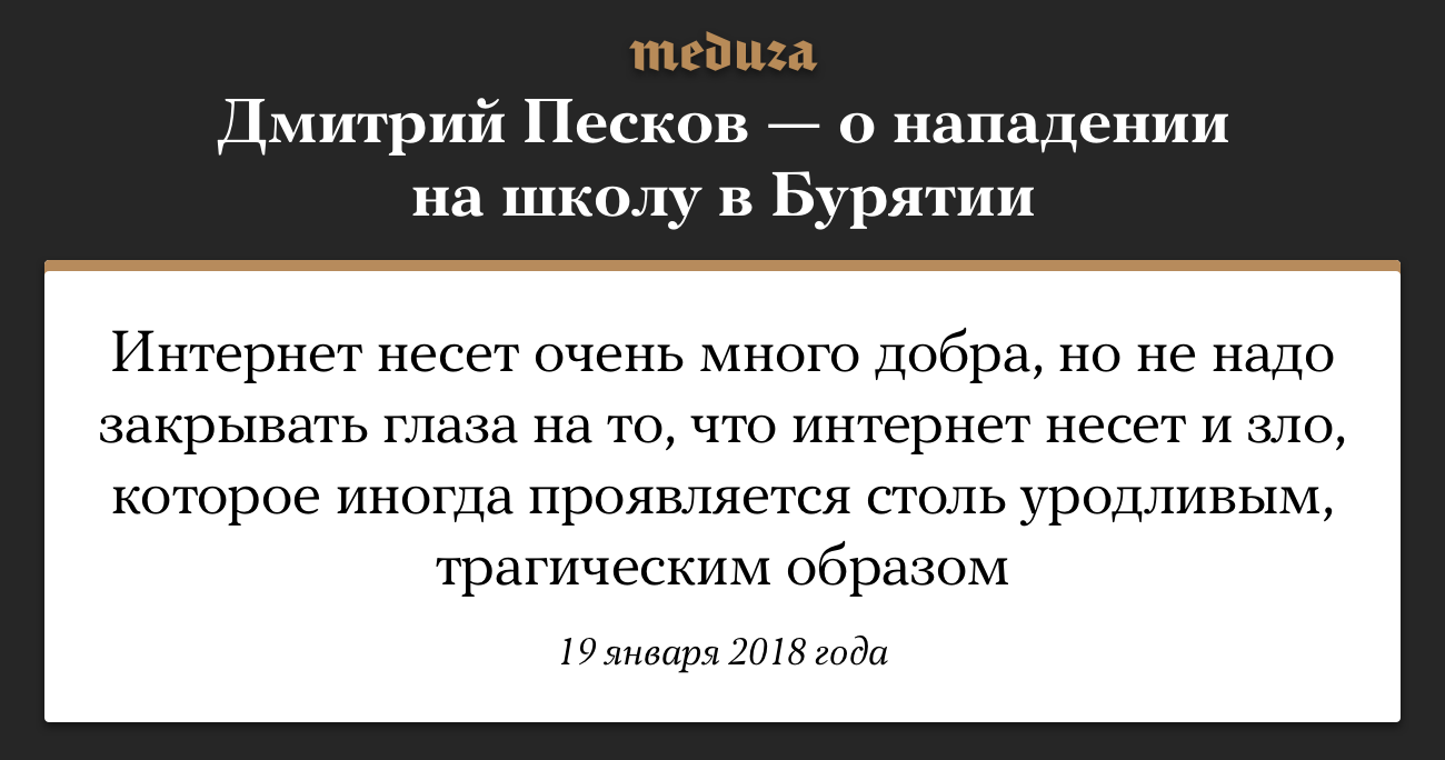 Пресс-секретарь Путина связал нападение на школу в Бурятии с интернетом, в котором есть зло. Цитата