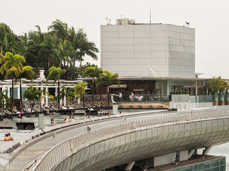 "В Сингапуре есть отель, который называют "лодкой" (Marina Bay Sands. - Прим. NEWSru.com), на крыше которого находится переливной бассейн. Мы изначально планировали сделать вертолетную площадку на "Высоцком", но не запустили в коммерческую эксплуатацию по экономическим причинам в стране. Так что я давно вынашивал идею с бассейном, но не знал, как ее лучше реализовать. Но теперь всеё сошлось", - рассказывает о своей задумке совладелец здания Андрей Гавриловский.