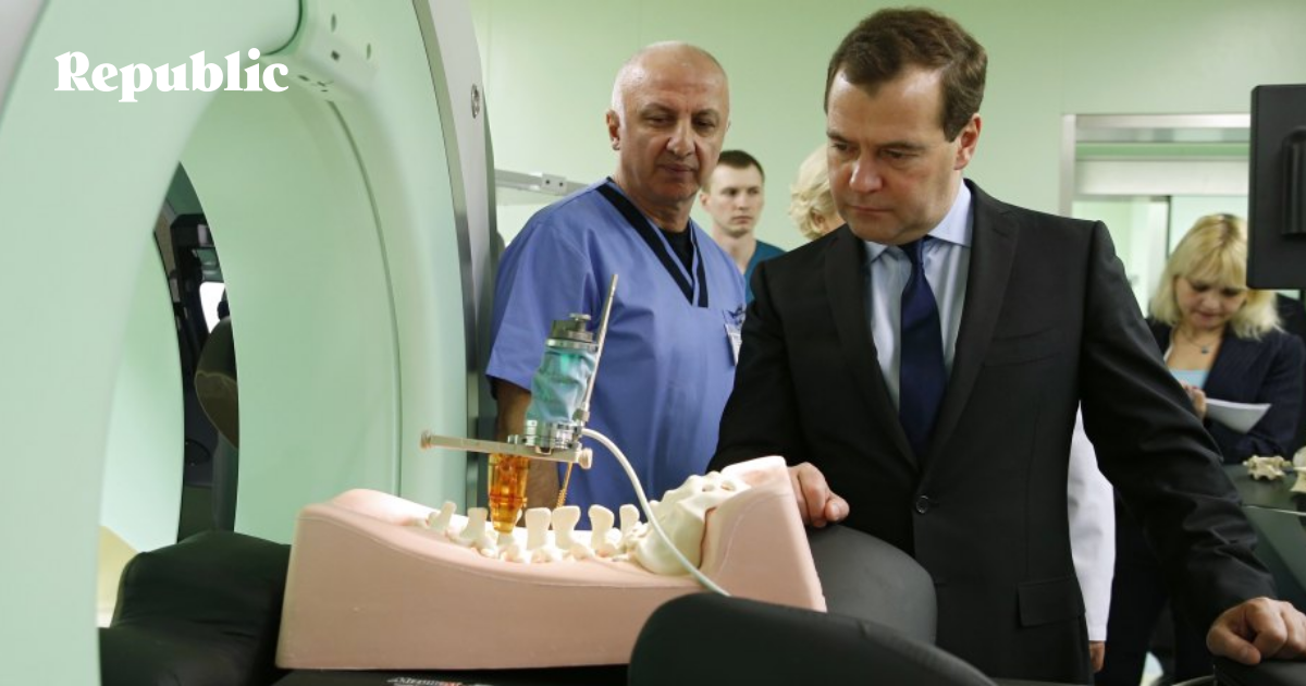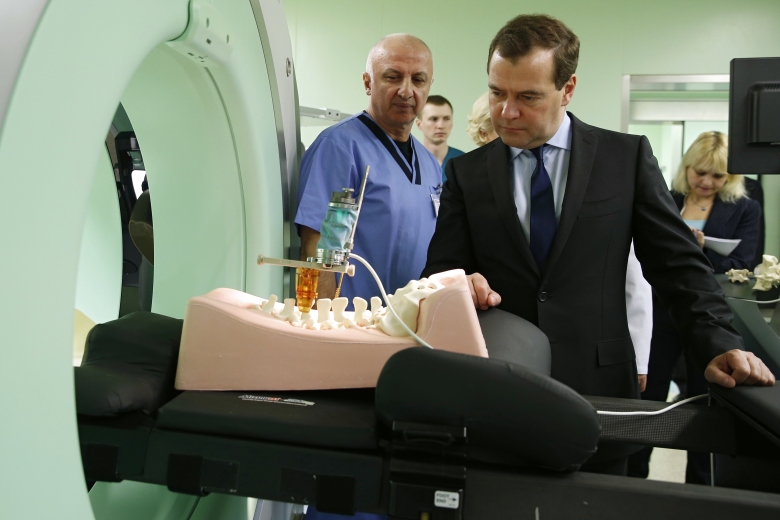 Дмитрий Медведев во время посещения больницы. Фото: Дмитрий Астахов / РИА Новости