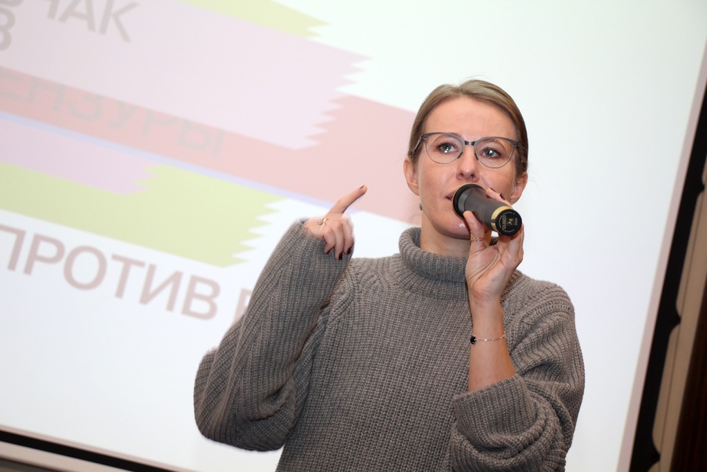 В итоге Собчак опоздала минут на двадцать. Ее представили как «будущего президента Российской Федерации», но она сразу же сказала, что не борется за победу.