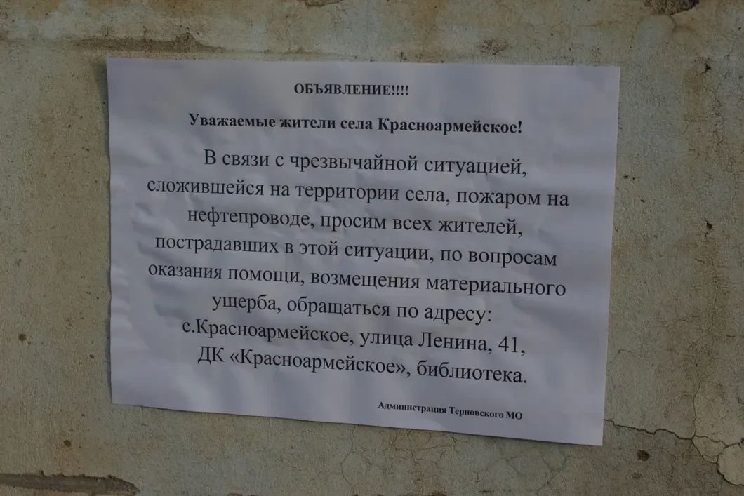 «Такие ситуации бывают очень редко. По Саратовской области первый раз», — говорит Андрей Сюмак. Поселок не входит в охранную зону трубопровода. «Учений с жителями мы не проводим, мы проводим совместные учения с МЧС, и, как показала практика, мы справились на отлично, — руководитель слегка улыбается. — Нефтепровод был аварийно остановлен по причине падения давления. Выход нефти удалось минимизировать. Ремонтные бригады сработали оперативно».