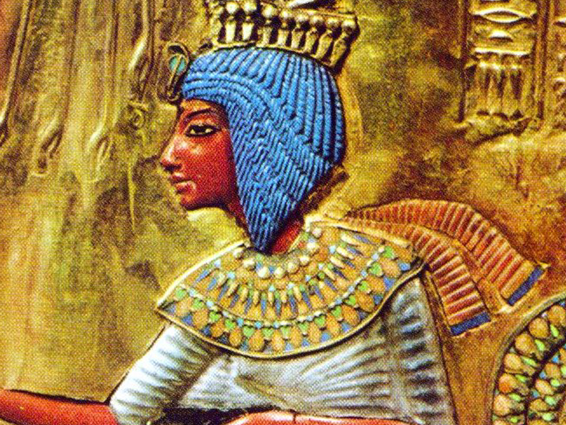 Тутанхамон и Анхесенамон (фрагмент спинки золотого трона Тутанхамона)