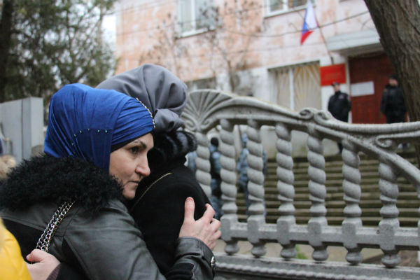Перед началом заседания коридор битком набит слушателями, в основном женщинами. С момента аннексии поддержка во время судов и обысков стала привычным делом. "Все заседания по делам "Хизб ут-тахрир" проходят в закрытом режиме - абсолютно безосновательно. Жены не допускаются не только в зал суда, но порой и в само здание. Для них заседания - единственная возможность увидеть супруга. Для всех это очень болезненный вопрос, поэтому сегодня здесь столько людей", - объясняет активистка "Крымской солидарности" Лутфие Зудиева.