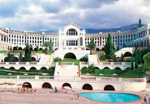 Санаторий "Жемчужина", состоящий сейчас из 48 зданий и сооружений, находится неподалеку от замка "Ласточкино гнездо".