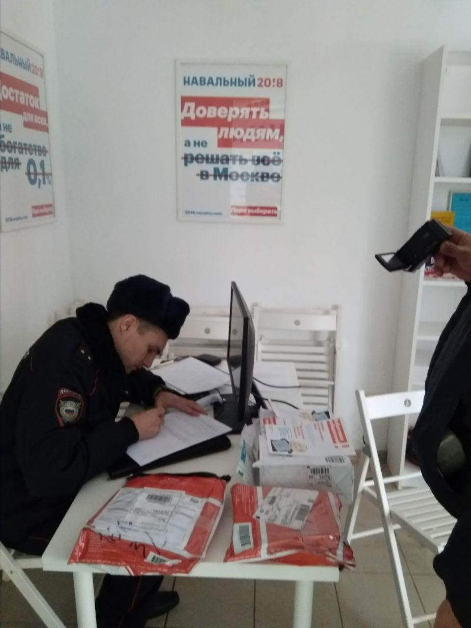 В тот же день сотрудники центра «Э» провели в обыск в калининградском штабе Навального, где, по словам оппозиционеров, изъяли 130 листовок.
