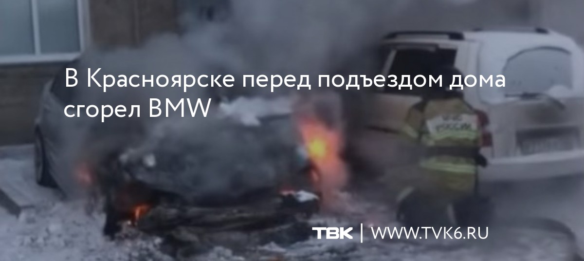 В Красноярске перед подъездом дома сгорел BMW