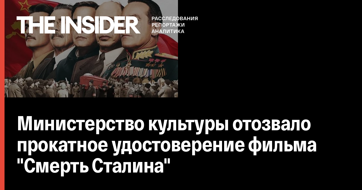 «Прокатное удостоверение у фильма «Смерть Сталина« отозвано», - заявила представитель Минкультуры.