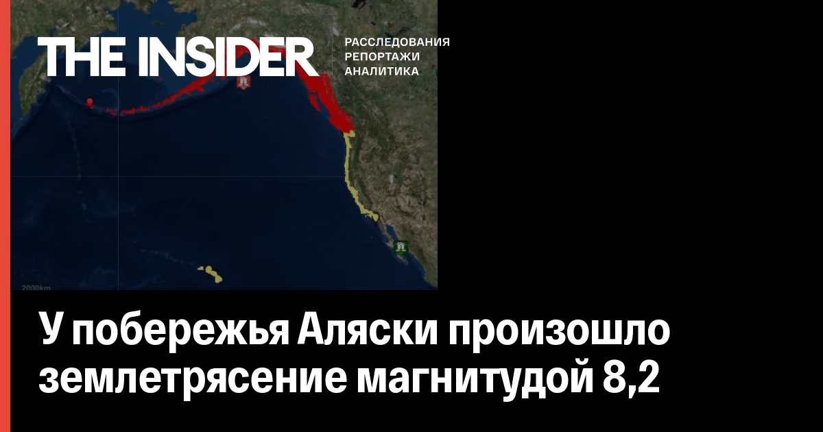 В 300 км от побережья Аляски произошло землетрясение магнитудой 8,2, сообщает Геологическая служба США.