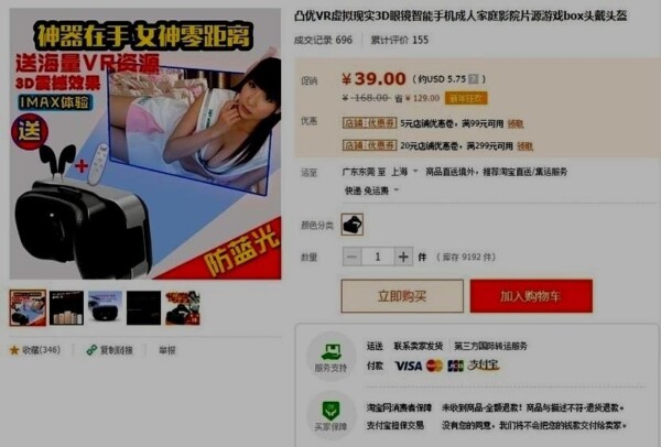 Из-за труднодоступности порно стало привлекательным рекламным инструментом. В январе 2017 года в Шэньчжэне арестовали 19 человек, связанных с онлайн-магазином по продаже очков виртуальной реальности. Как утверждает полиция, продавцы предлагали клиентам бесплатные порно-ролики в комплекте с устройствами.