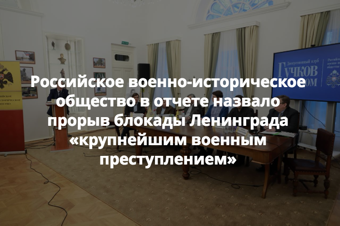 Российское военно-историческое общество 18 января опубликовало на сайте отчет о встрече дискуссионного клуба «Гучков дом». В нем говорилось о том, что прорыв блокады Ленинграда и освобождение узников Освенцима — это крупнейшие военные преступления.
