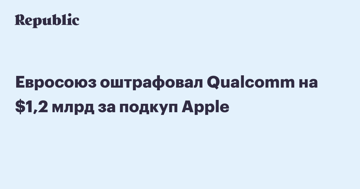 Европейский союз оштрафовал компанию Qualcomm на $1,2 млрд – она платила Apple за то, чтобы та не использовала чипы конкурентов в своих айфонах и айпадах. Об этом сообщает Bloomberg.