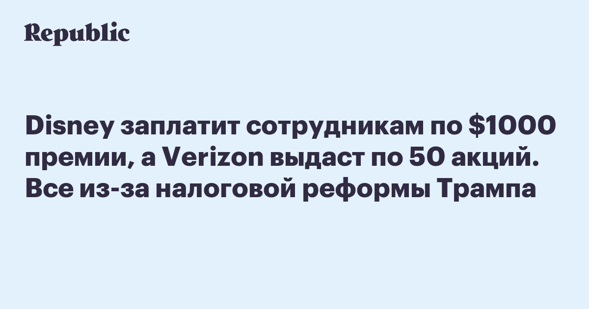 Disney заплатит сотрудникам по $1000 премии, а Verizon выдаст по 50 акций. Все из-за налоговой реформы Трампа