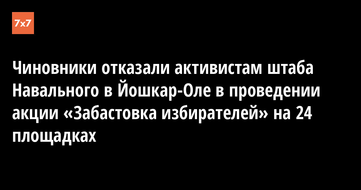 Сотрудники йошкар-олинской мэрии и Министерства внутренней политики Марий Эл отказали местному штабу Навального в проведении акции «Забастовки избирателей» на всех 24 площадках, которые они просили согласовать. Об этом корреспонденту «7x7» сообщил 24 января координатор штаба Навального в Йошкар-Оле Вадим Кремнёв.