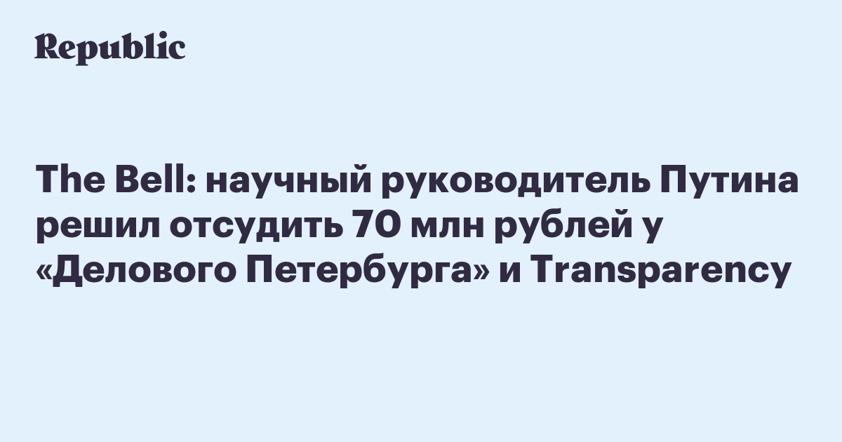 The Bell: научный руководитель Путина решил отсудить 70 млн рублей у «Делового Петербурга» и Transparency