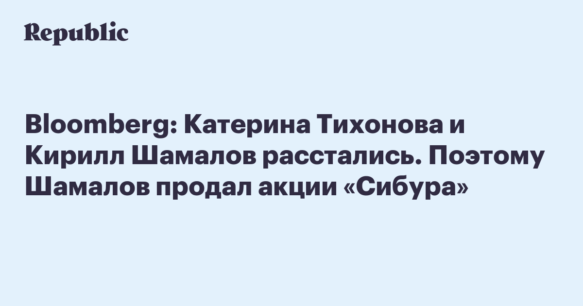 Bloomberg: Катерина Тихонова и Кирилл Шамалов расстались. Поэтому Шамалов продал акции «Сибура»