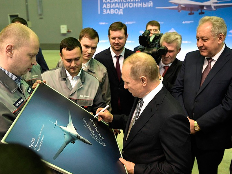 Президент России Владимир Путин предложил сделать гражданскую версию сверхзвукового бомбардировщика Ту-160. Свою идею президент решил озвучить во время посещения Казанского авиационного завода имени Горбунова, где ему представили полет модернизированного стратегического бомбардировщика Ту-160 «Петр Дейнекин».