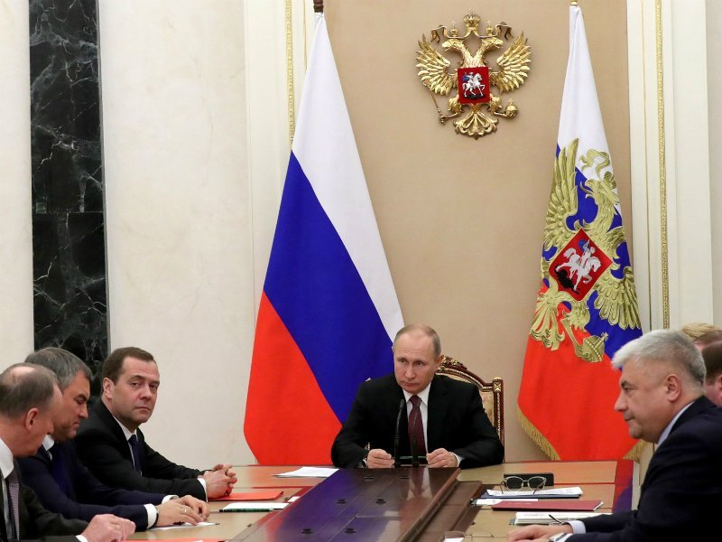 На совещании присутствовали председатель правительства РФ Дмитрий Медведев, спикеры Совета Федерации и Государственной думы Валентина Матвиенко и Вячеслав Володин, глава президентской администрации Антон Вайно, секретарь Совета безопасности Николай Патрушев, министр иностранных дел РФ Сергей Лавров, министр внутренних дел Владимир Колокольцев, а также спецпредставитель президента по вопросам природоохранной деятельности, экологии и транспорта Сергей Иванов.