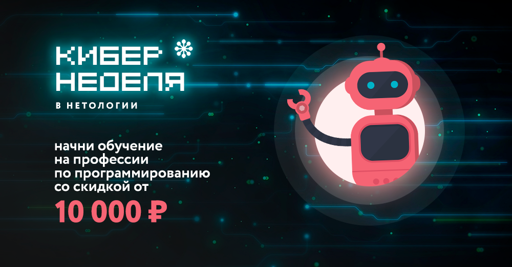 Центр онлайн-образования «Нетология» запустил акцию под названием «КиберНеделя». До 30 января 2018 года можно получить скидку на обучение по направлению «программирование».