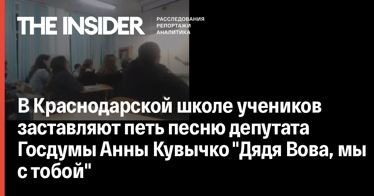 В краснодарской средней общеобразовательной школе №11 учеников заставляют исполнять песню «Дядя Вова, мы с тобой», которую впервые записала депутат Госдумы Анна Кувычко, сообщает «Голос Кубани».