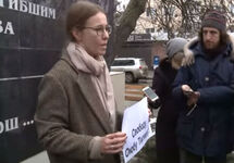 Собчак встала с плакатом "Свободу Оюбу Титиеву" у памятника журналистам, погибшим за свободу слова. "Сейчас этот человек (Титиев. - Ред.) в тюрьме, он в жутком состоянии, он голодает, его допрашивают сутками", - заявила журналистка. Собчак призвала главу региона Рамзана Кадырова поспособствовать освобождению правозащитника. "Мы все понимаем, что Рамзан Ахматович может решить этот вопрос", - подчеркнула она.